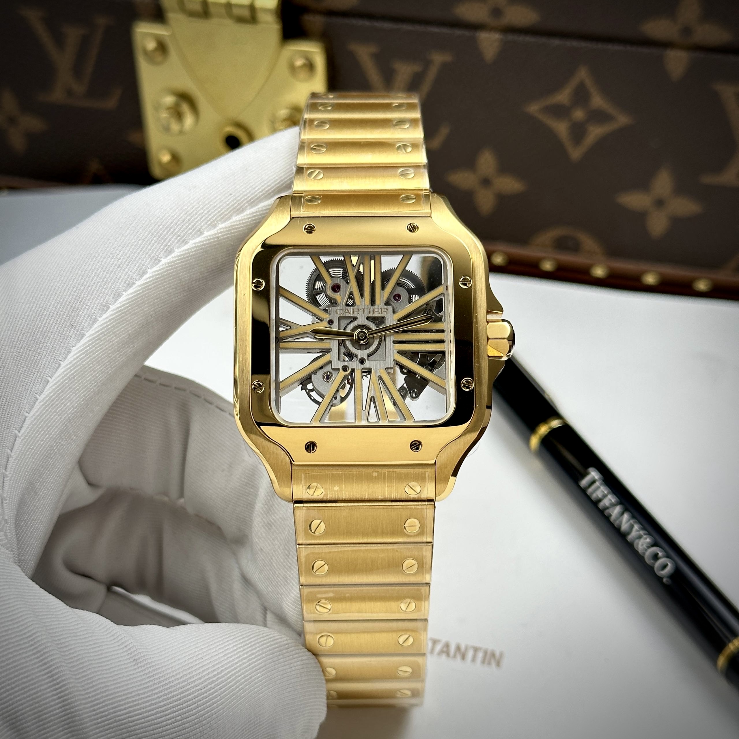 Chào bạn, vẻ đẹp của dòng Santos Skeleton vốn không nằm ở sự phô trương, mà nằm ở cách nó phô diễn những nhịp đập tinh vi nhất của một cỗ máy thời gian ngay trên cổ tay. Tại D.Time, bọn mình mang đến phiên bản từ RICH Factory – đây là mẫu Chế tác 1:1 sát với tinh thần bản hãng nhất hiện nay, giúp bạn trải nghiệm trọn vẹn vẻ đẹp thiết kế với chi phí vô cùng dễ tiếp cận.
